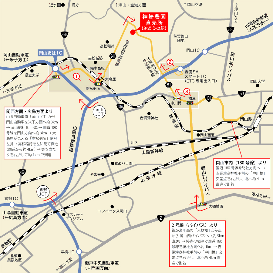 <ぶどうの駅>岡山市北区長野1056 TEL:086-284-4136カーナビの住所検索は「岡山市北区長野1056」と入力してください。