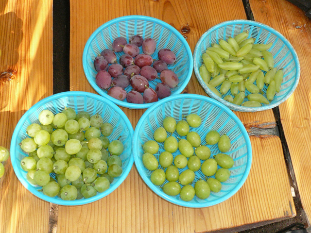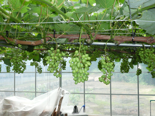 【化粧前】受粉後の房は自由気ままで粒の大きさもまちまちです。一房ずつ手入れが必要です。