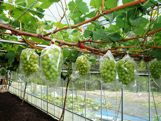 【直売所横のハウス群】 長野地区は昔からのぶどうの大生産地。