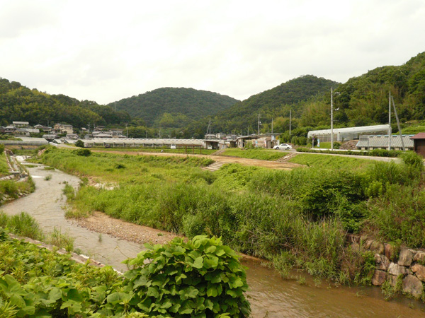 【直売所裏の砂川】 6月上旬にはたくさんの蛍が飛び交います。