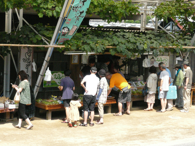【オープンを待つ直売所】 間もなく大賑わい。車は直売所裏においてください。