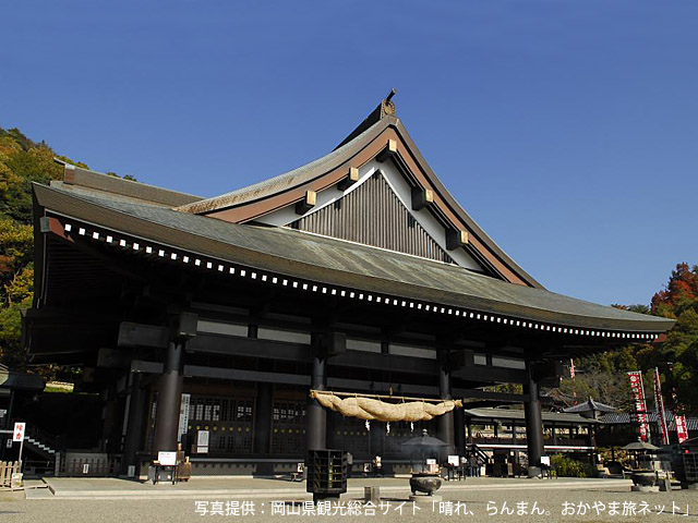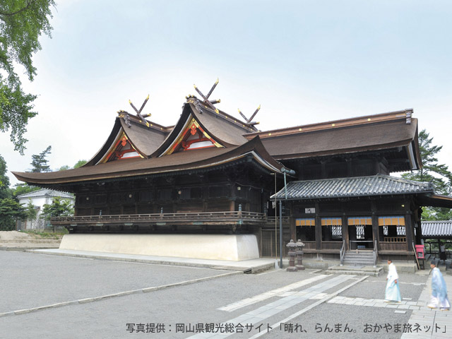 【吉備津神社】全国でも唯一の比翼入母屋造りによる勇壮な本殿は、国宝に指定されています。当園から車で約20分。