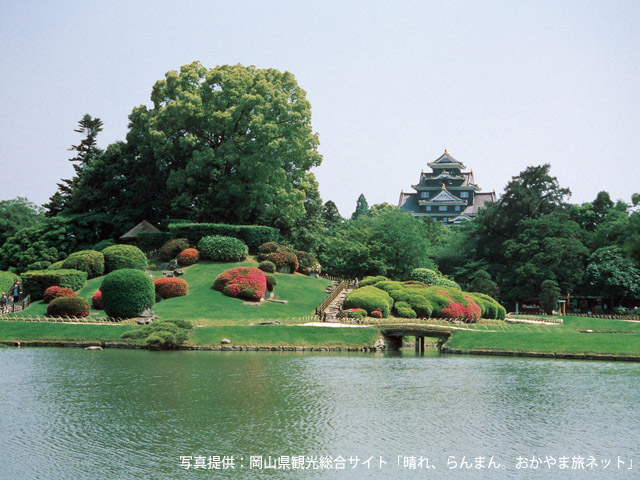 【後楽園】日本三大名園のひとつで、岡山城を借景にした江戸時代を代表する大名庭園です。当園から車で約30分。
