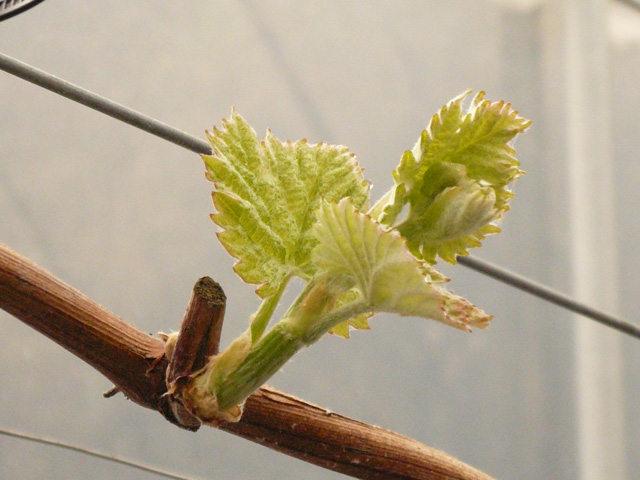 【芽吹き】4月の下旬になると無加温のハウスでも新芽が出始めます。