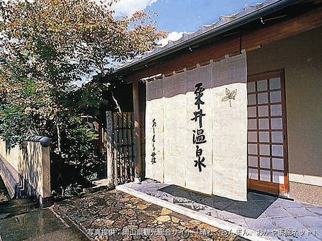 【粟井温泉 あしもり荘】江戸時代 足守藩が開いた温泉は、PH 9.5 のアルカリ性ラドン泉で お肌つるつるの美肌効果と肩こり・腰痛の癒し効果があります。当園から車で約30分。