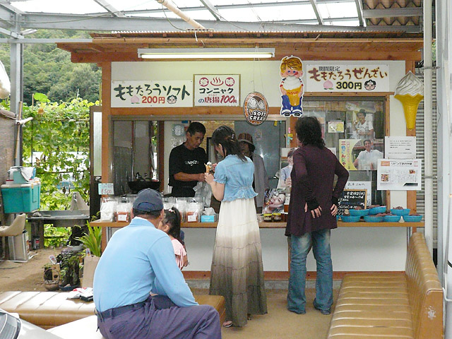 【フードコーナー】 ソフトクリーム、こんにゃくのから揚げが大人気です。